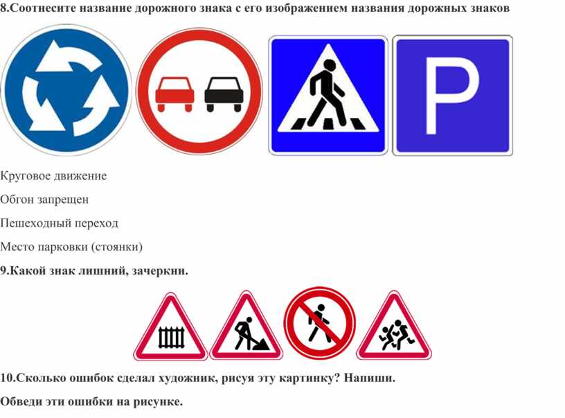 8.Соотнесите название дорожного знака с его изображением названия дорожных знаков