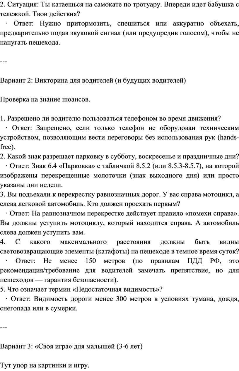 Вариант 2: Викторина для водителей (и будущих водителей)