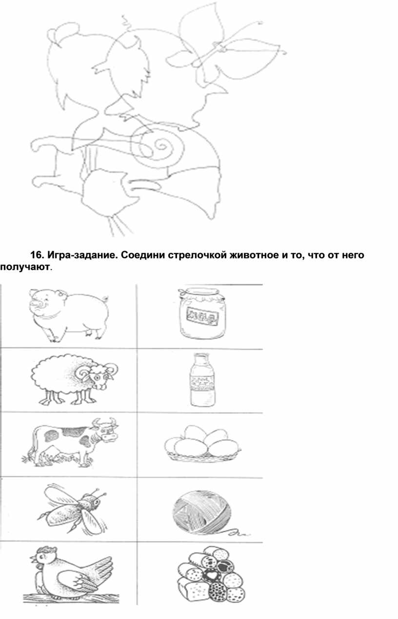 16. Игра-задание. Соедини стрелочкой животное и то, что от него получают.