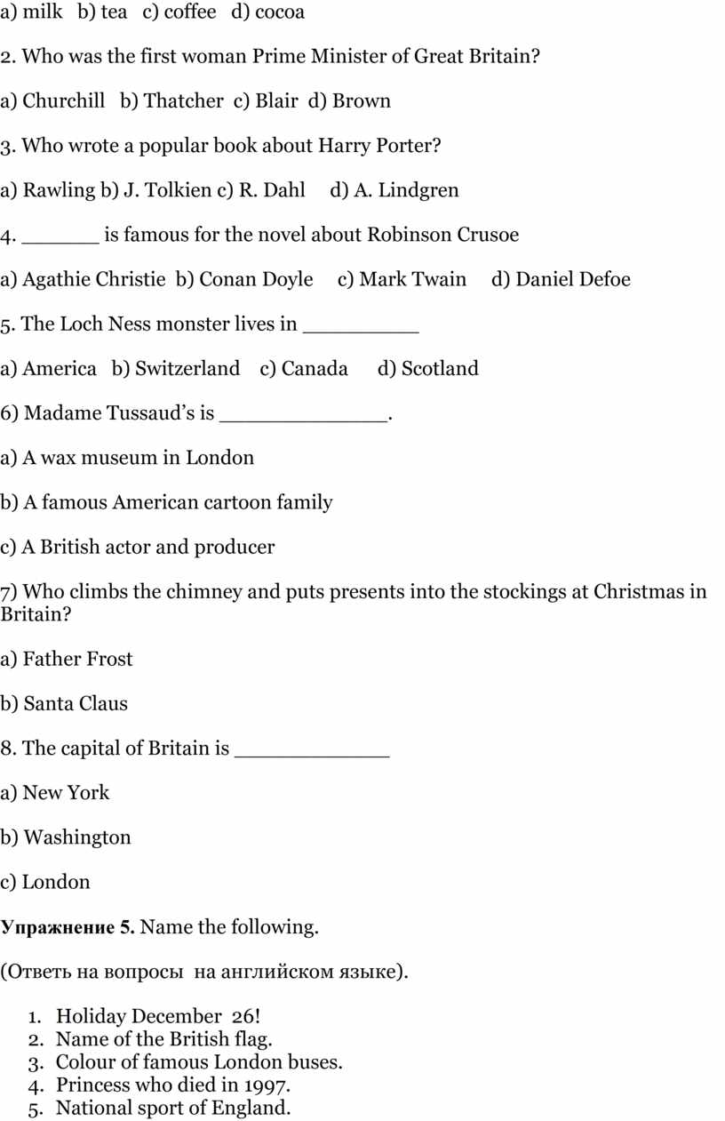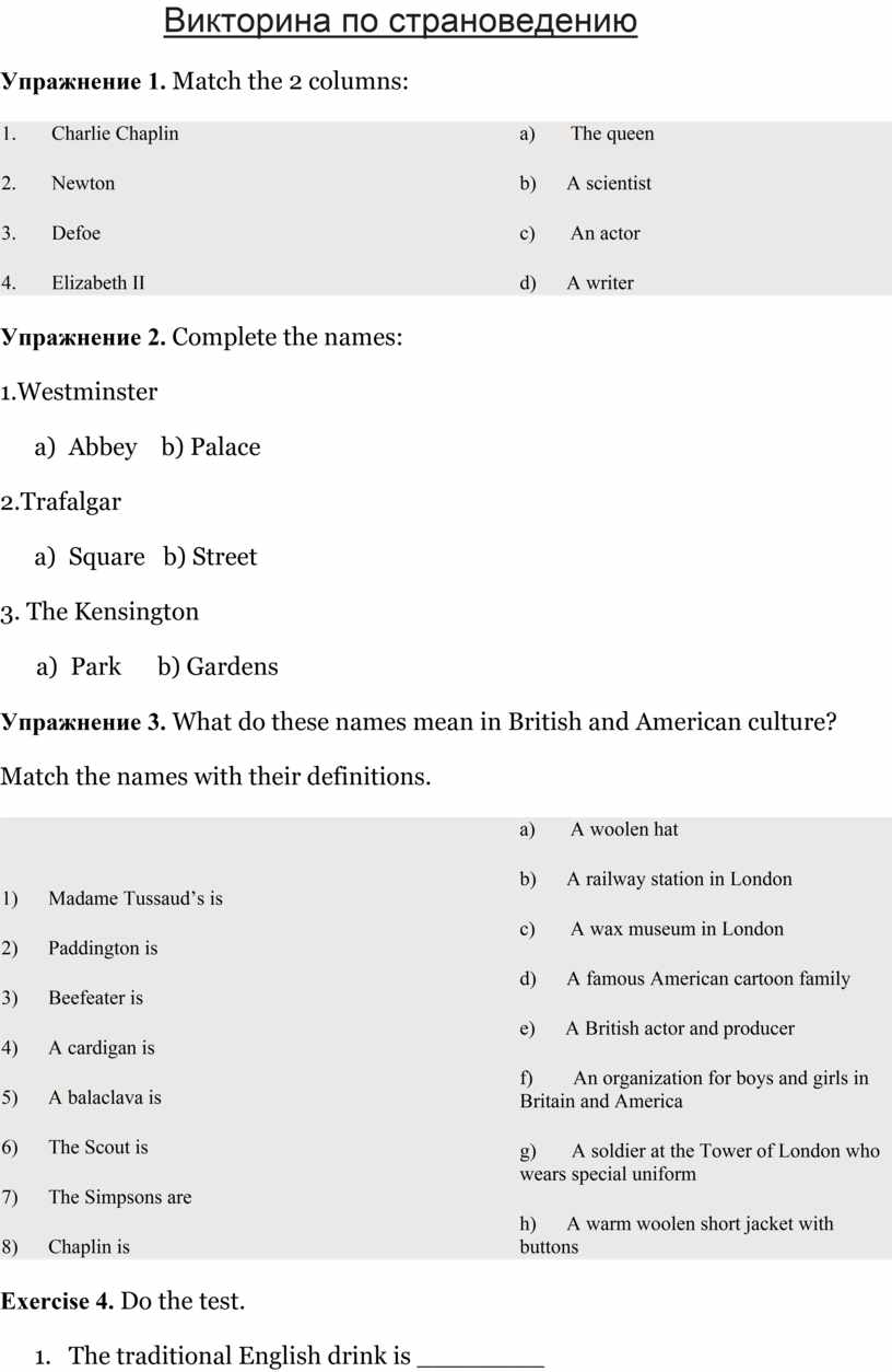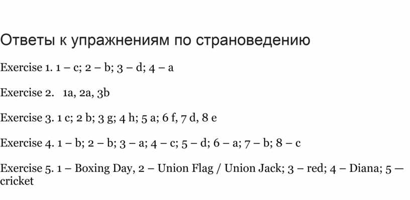 Ответы к упражнениям по страноведению
