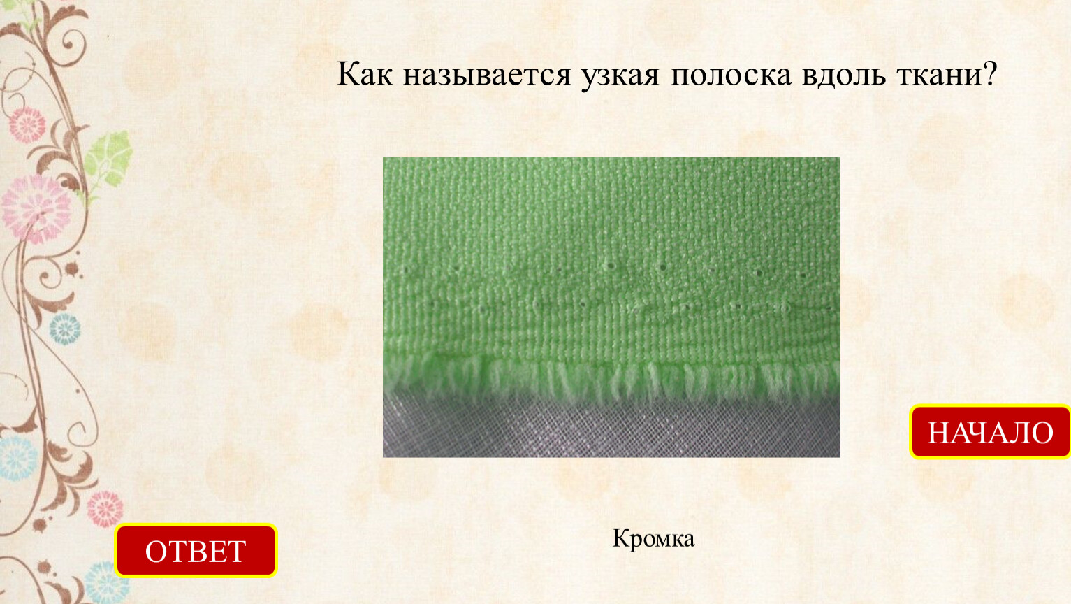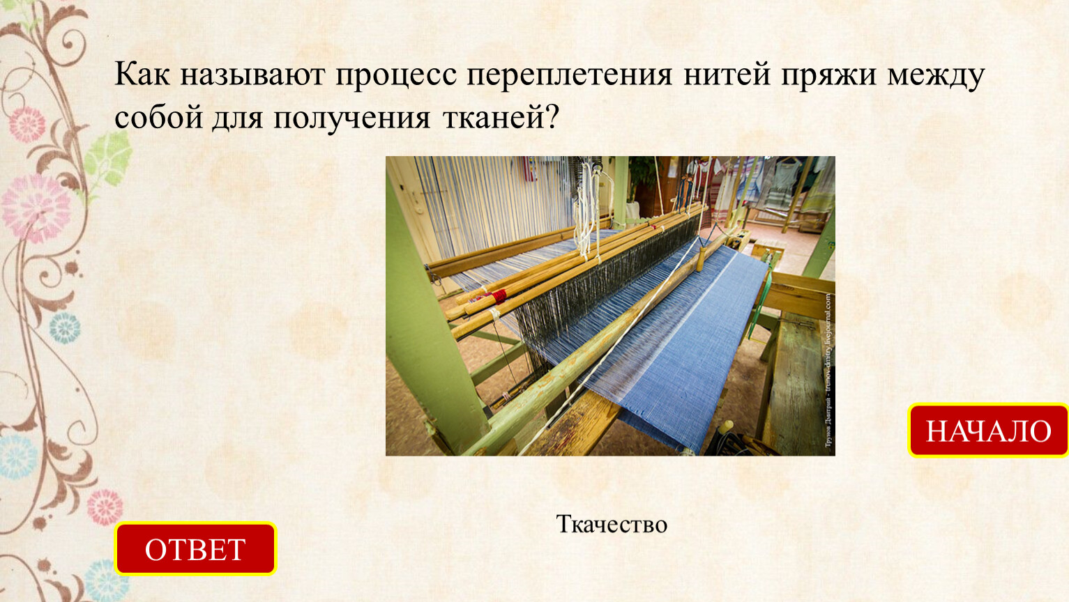 Как называют процесс переплетения нитей пряжи между собой для получения тканей?