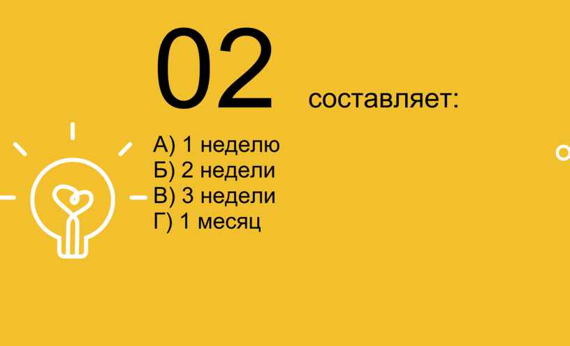 В) 3 недели Г) 1 месяц |