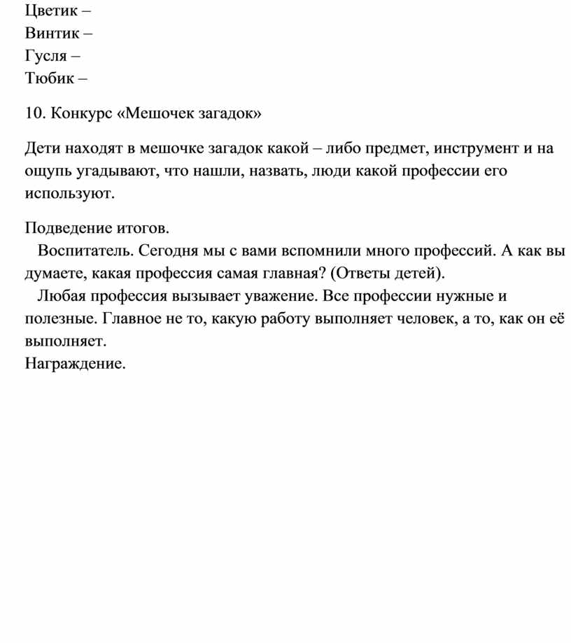 Воспитатель. Сегодня мы с вами вспомнили много профессий. А как вы думаете, какая профессия самая главная? (Ответы детей).