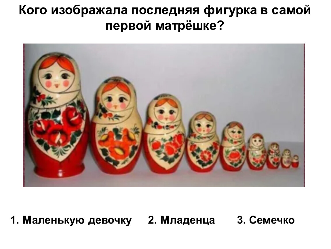 Кого изображала последняя фигурка в самой первой матрёшке?