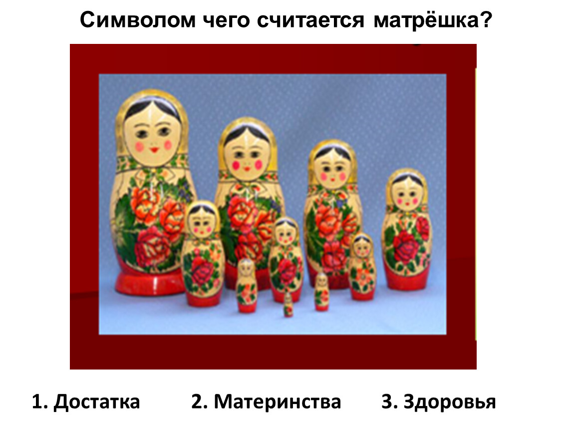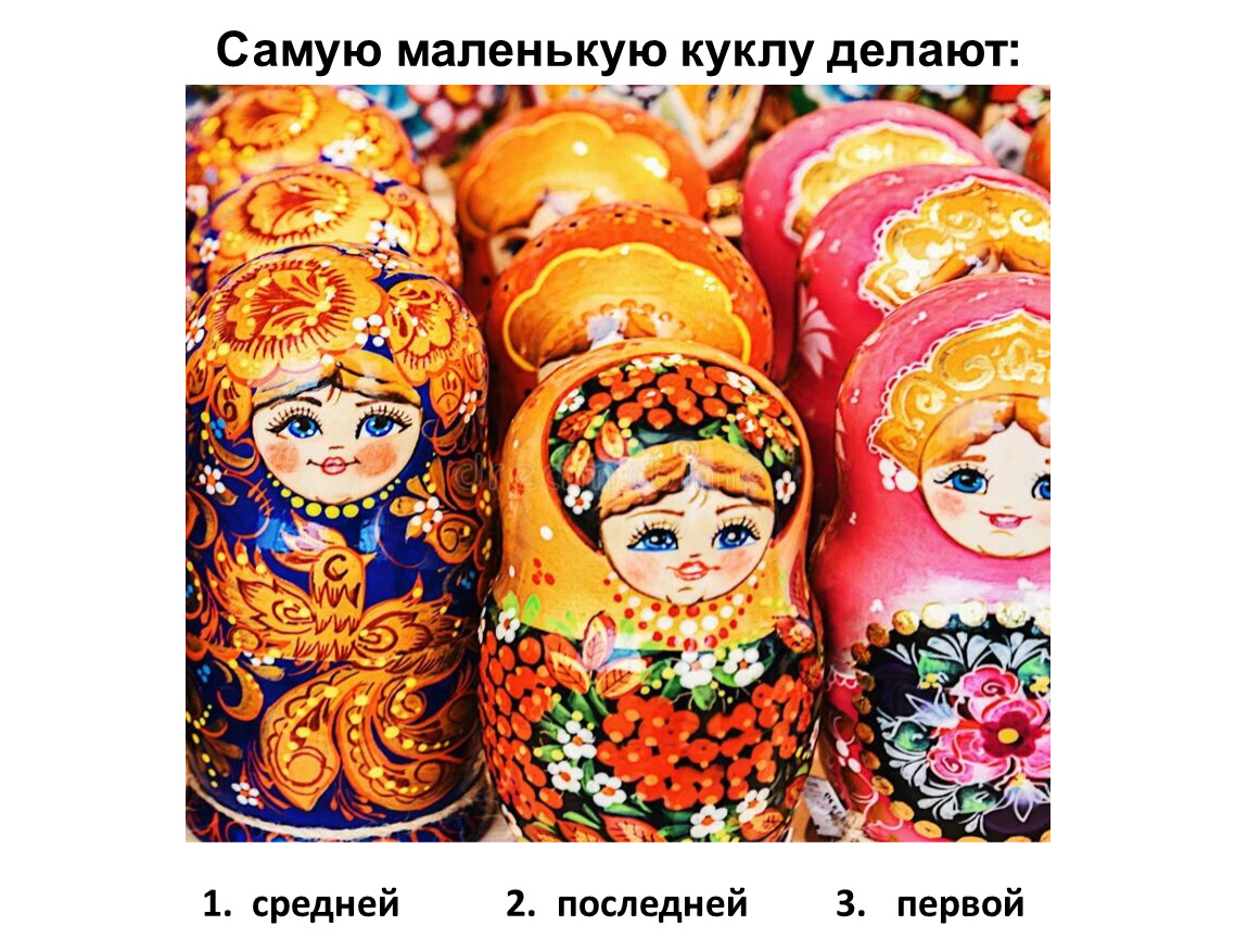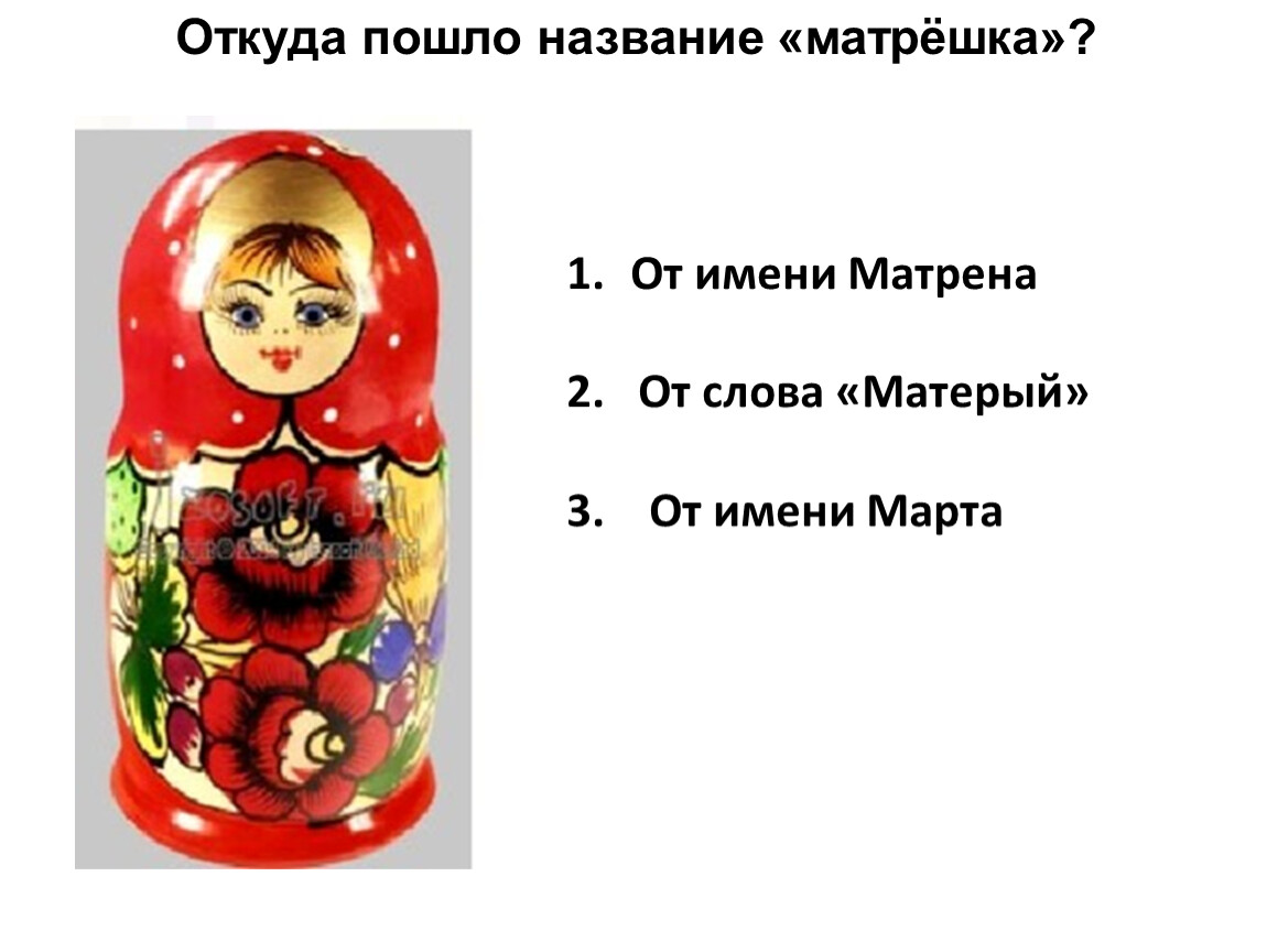 1.Матрешка 2. Машка 3. Матрена