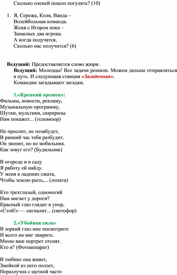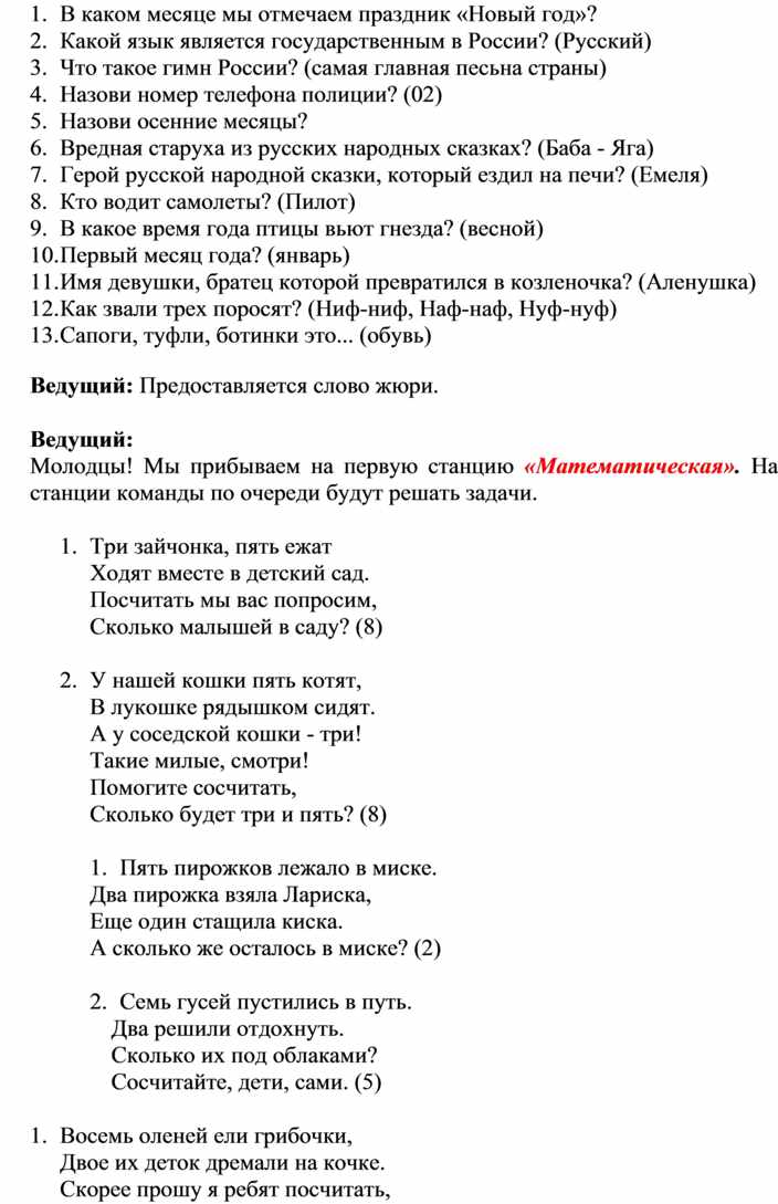 Ведущий: Молодцы! Все задачи решили. Можем дальше отправляться в путь. И следующая станция «Загадочная».