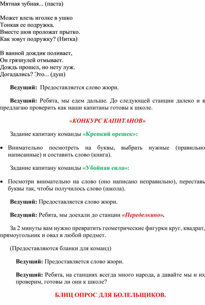 Ведущий: Ребята, мы едем дальше. До следующей станции далеко и я предлагаю проверить как наши капитаны готовы к школе.