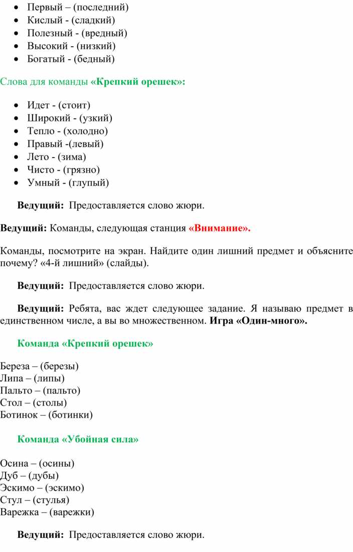 Ведущий: Ребята, а мы приехали на станцию «Перевертыш». Команды, вам предстоит назвать слова наоборот.