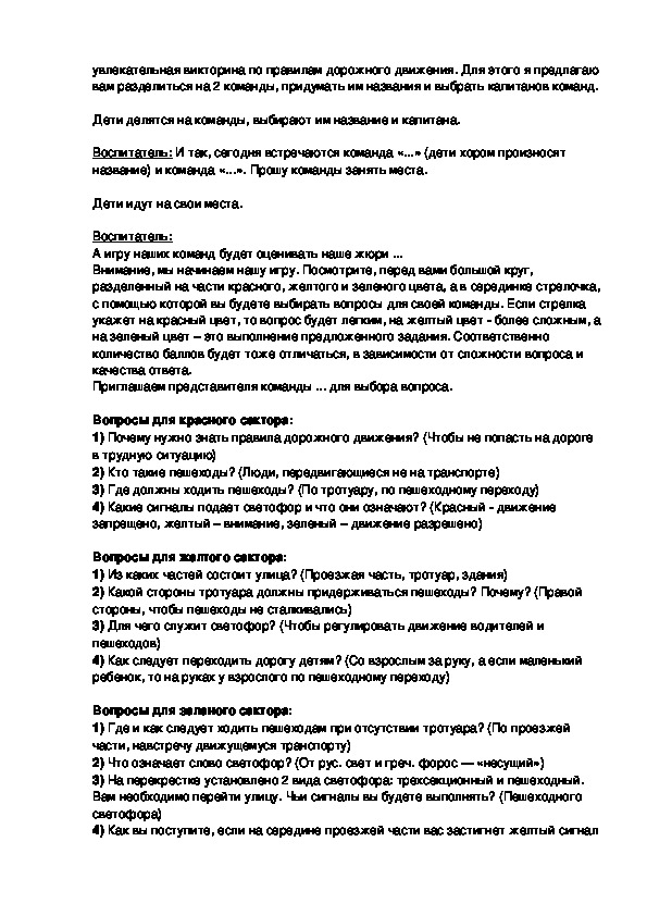 Воспитатель: Сегодня мы встретились с вами не просто так. Нас ждетувлекательная викторина по правилам дорожного движения. Для этого я предлагаю