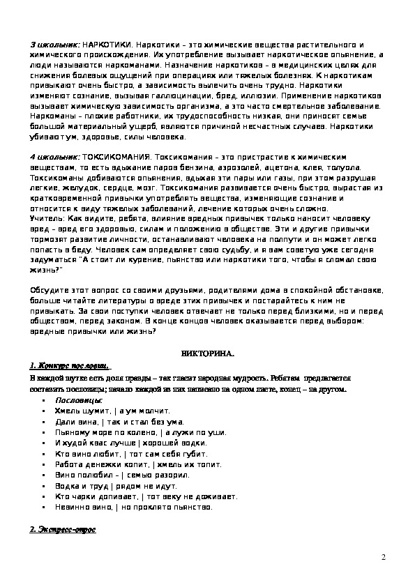 токсикомания, несоблюдение гигиены, наркотики) – школьники рассказывают об этих