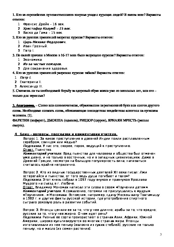 3. По какой причине в Москве в 1617 веке было запрещено курение? Варианты ответов: