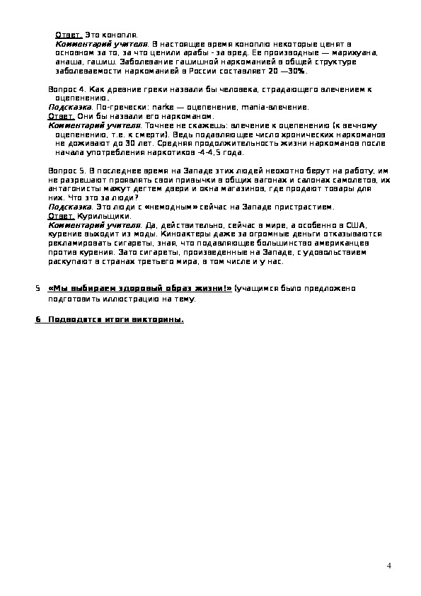 Учитель: Как видите, ребята, влияние вредных привычек только наносит человеку