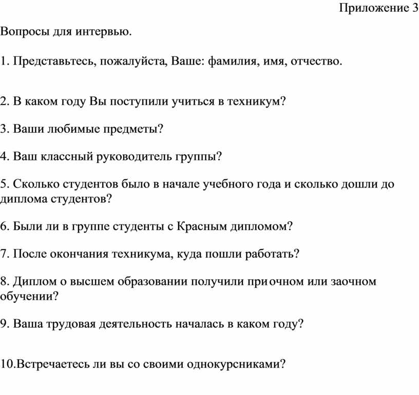 Методы: беседы с выпускниками техникума; беседа с учителями находящимися на пенсии; интервью, опрос, анкетирование, информационно-справочная работа с архивными документами.