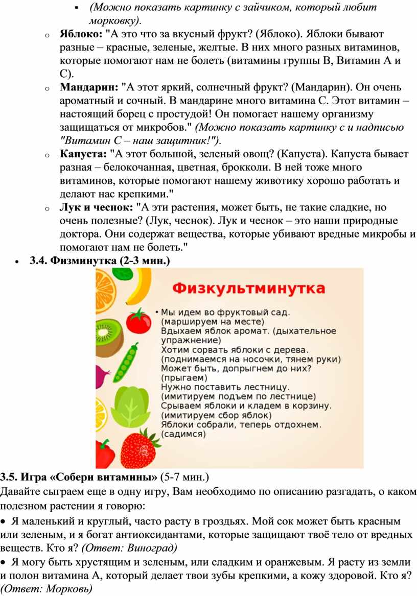 · 3.5. Игра «Собери витамины» (5-7 мин.)
