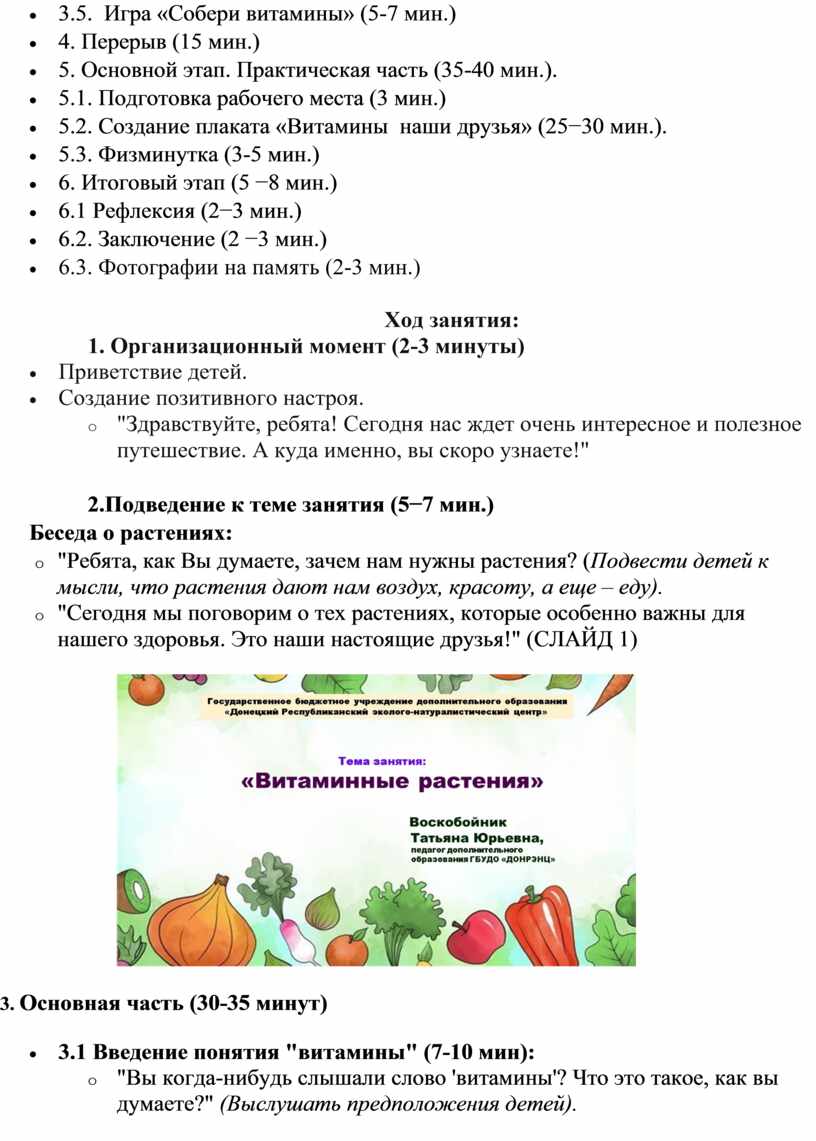 · 3.3. Знакомство с "витаминными" растениями (5−7 мин.)