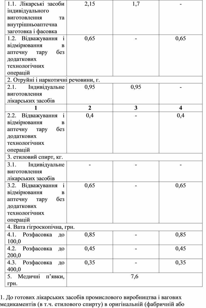 1.1. Лікарські засоби індивідуального виготовлення та внутрішньоаптечна заготовка і фасовка |