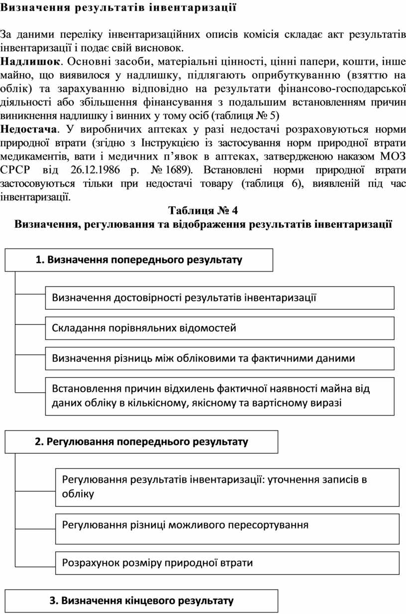 Визначення, регулювання та відображення результатів інвентаризації