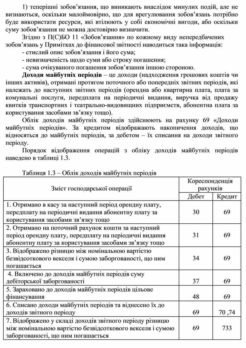 Таблиця 1.3 – Облік доходів майбутніх періодів