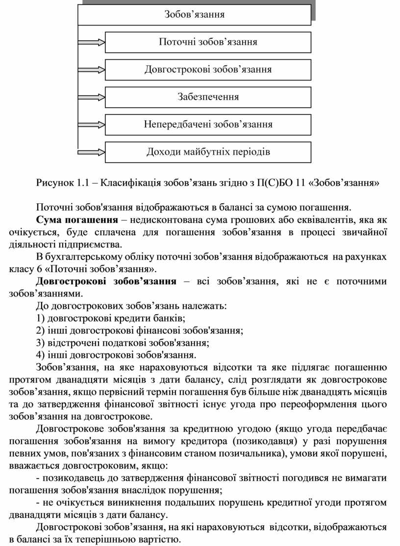 Рисунок 1.1 – Класифікація зобов’язань згідно з П(С)БО 11 «Зобов’язання»