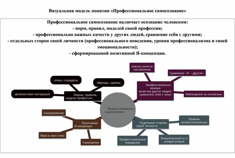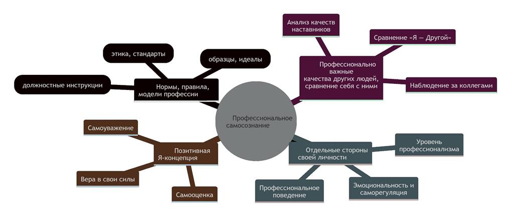 Центральный элемент (Профессиональное самосознание) выделен жирным шрифтом и расположен в корне — это «ядро» понятия.
