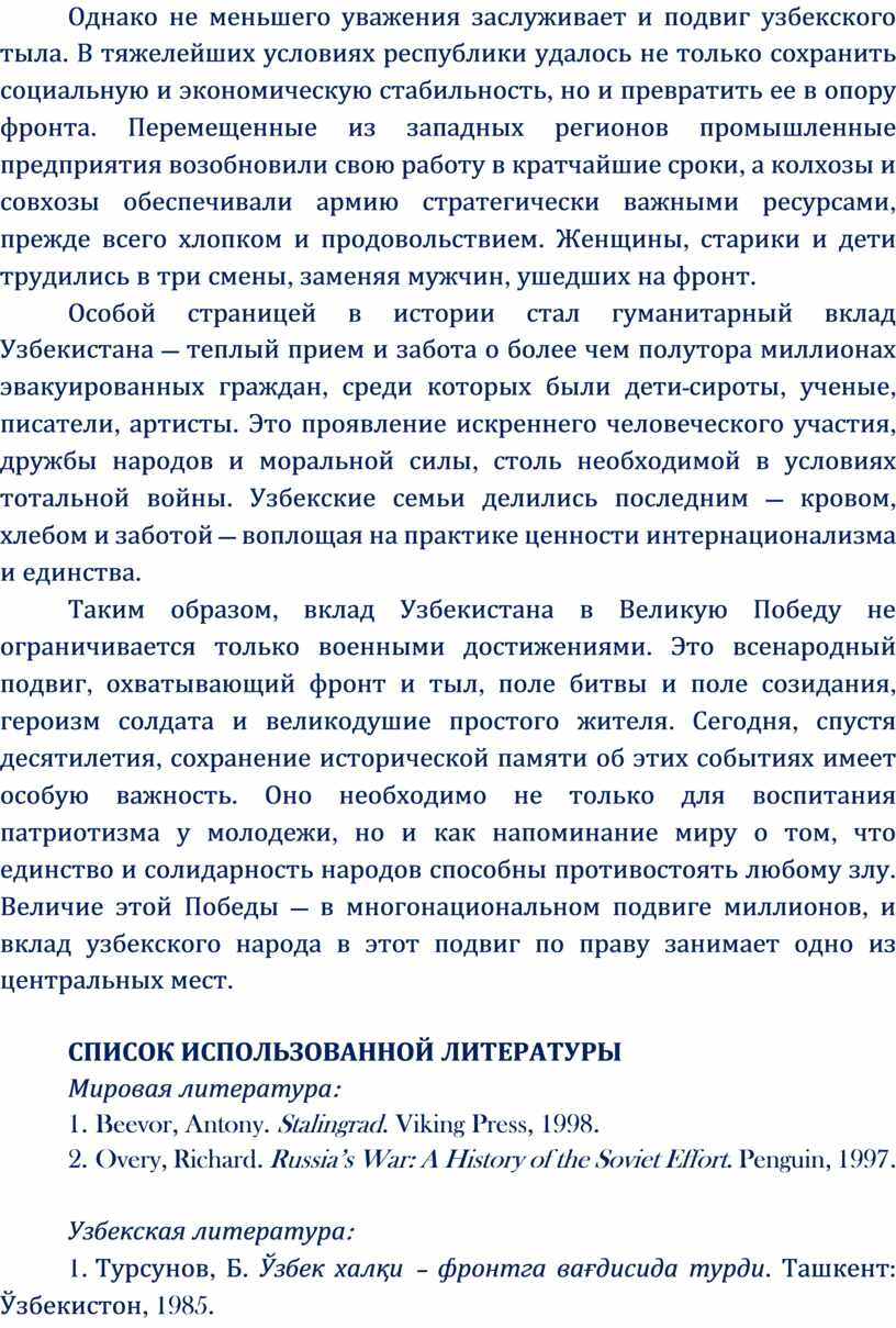 ВКЛАД УЗБЕКСКОГО НАРОДА В ПОБЕДУ