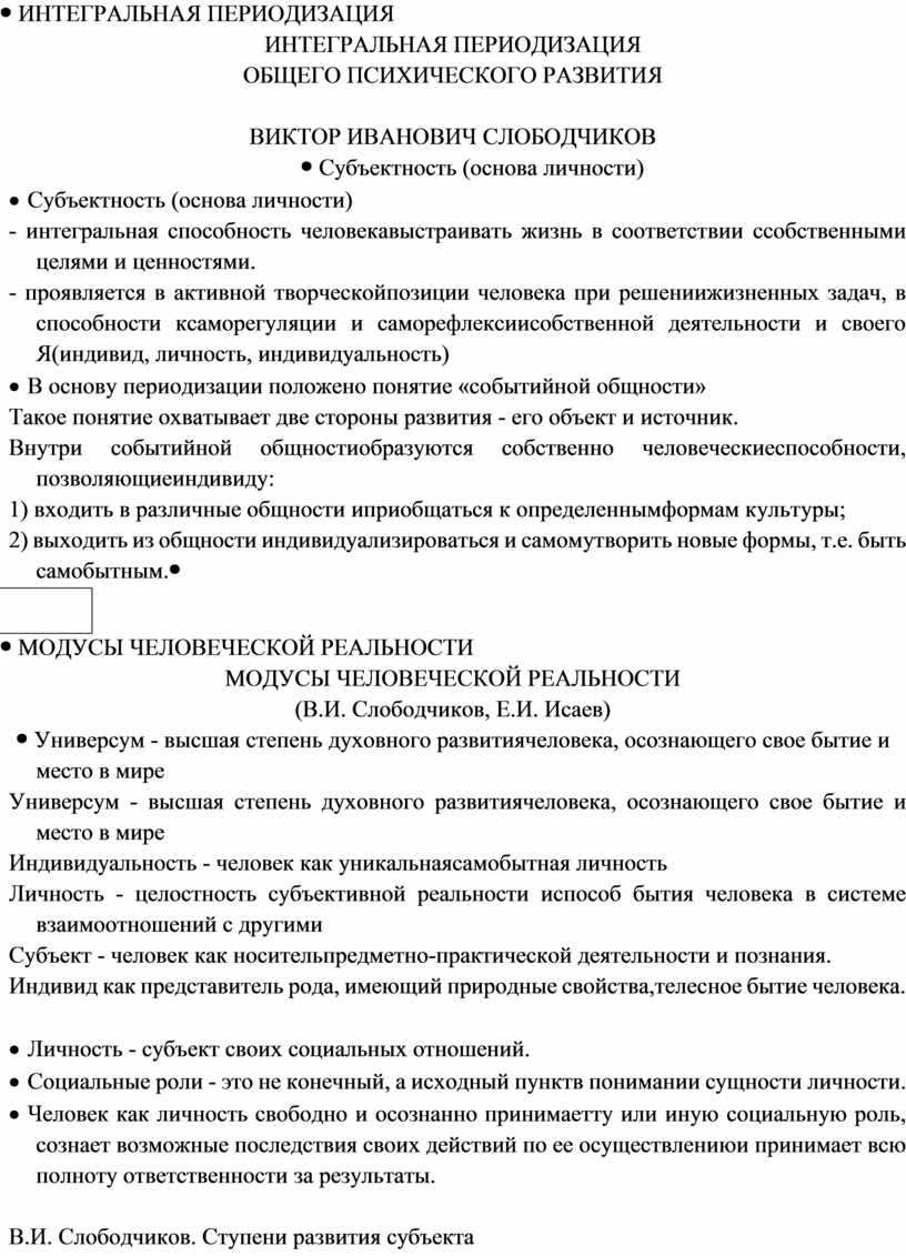 ИНТЕГРАЛЬНАЯ ПЕРИОДИЗАЦИЯ ОБЩЕГО ПСИХИЧЕСКОГО РАЗВИТИЯ