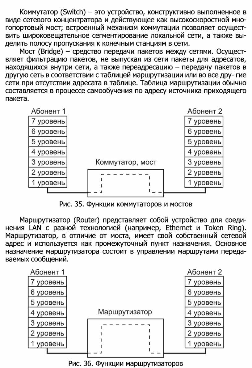Рис. 35. Функции коммутаторов и мостов