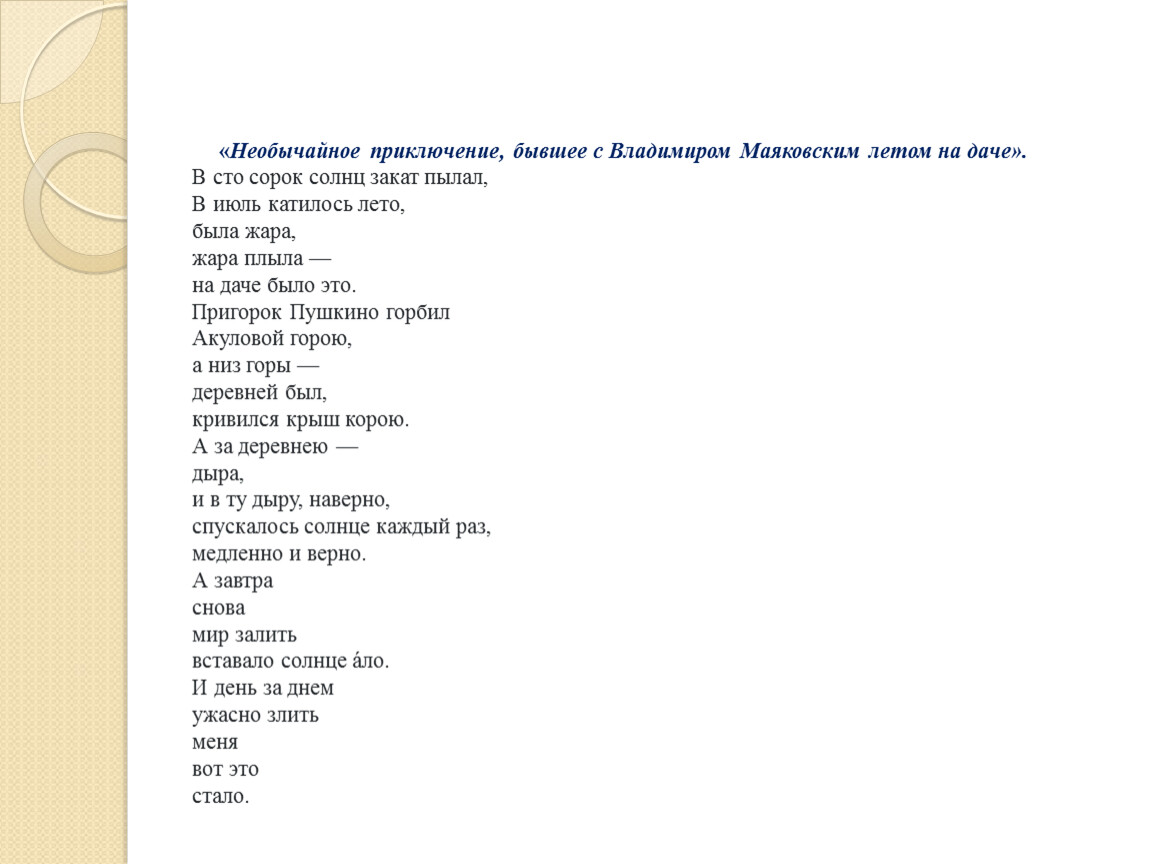 Владимир Маяковский «Необычайное приключение, бывшее с Владимиром Маяковским летом на даче»