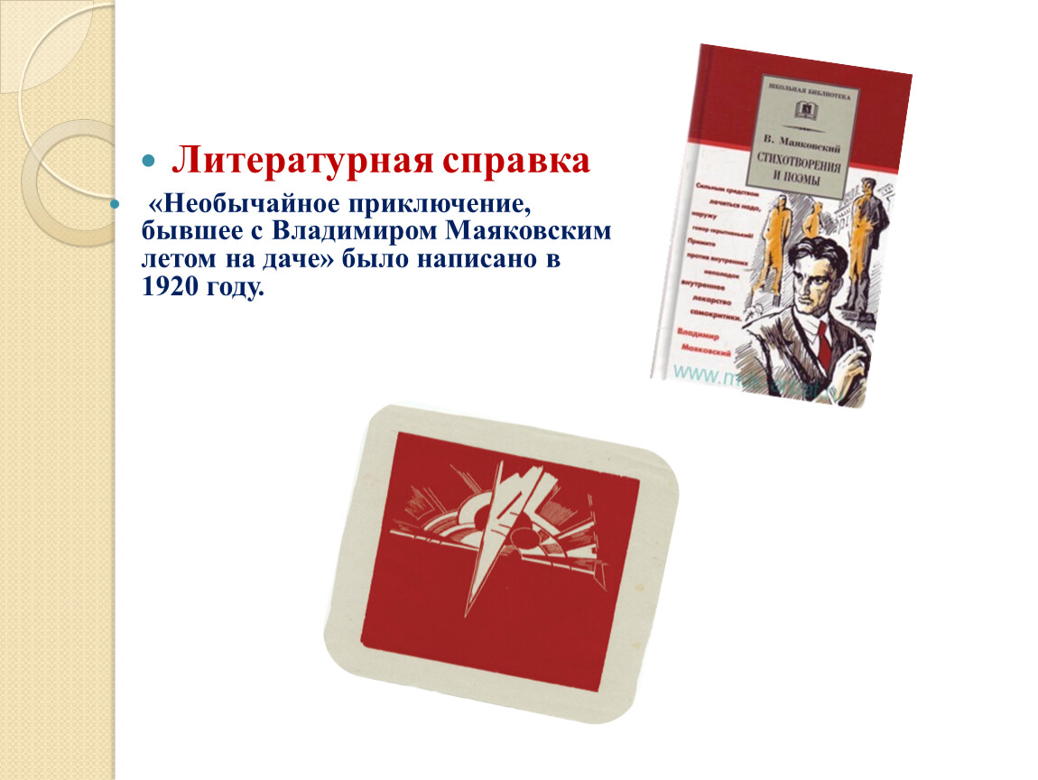 «Необычайное приключение, бывшее с Владимиром Маяковским летом на даче» было написано в 1920 году.