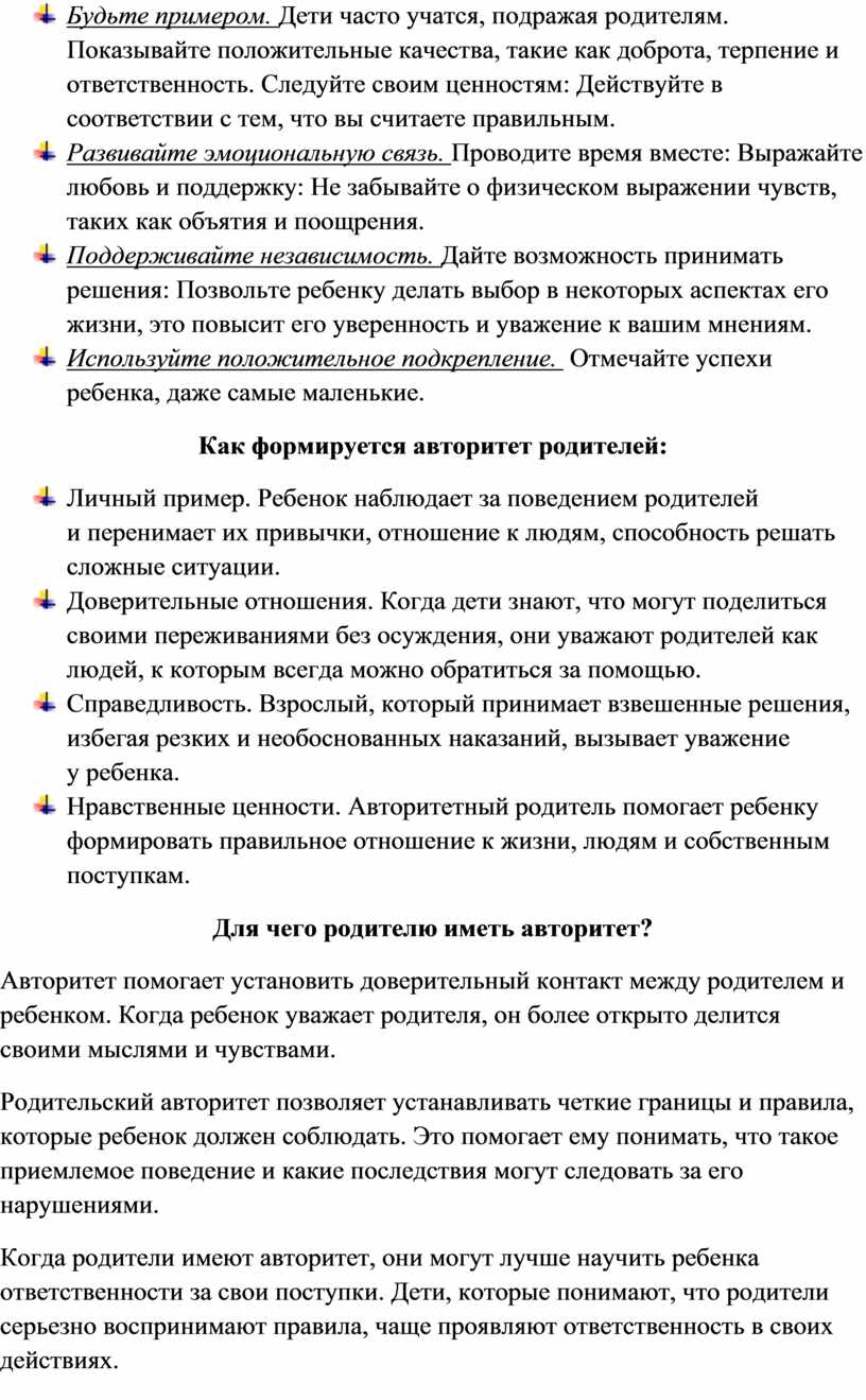 Авторитет помогает установить доверительный контакт между родителем и ребенком. Когда ребенок уважает родителя, он более открыто делится своими мыслями и чувствами.