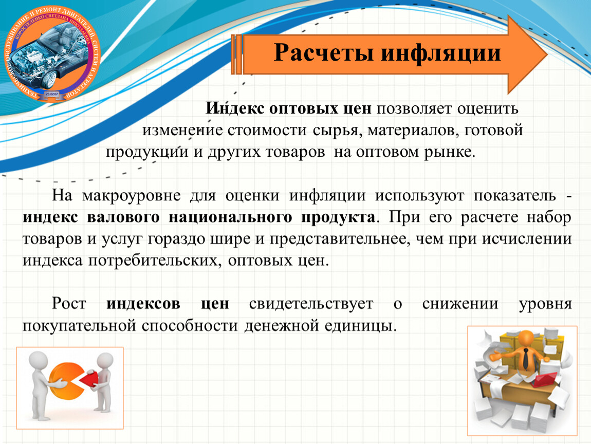 Рост индексов цен свидетельствует о снижении уровня покупательной способности денежной единицы.