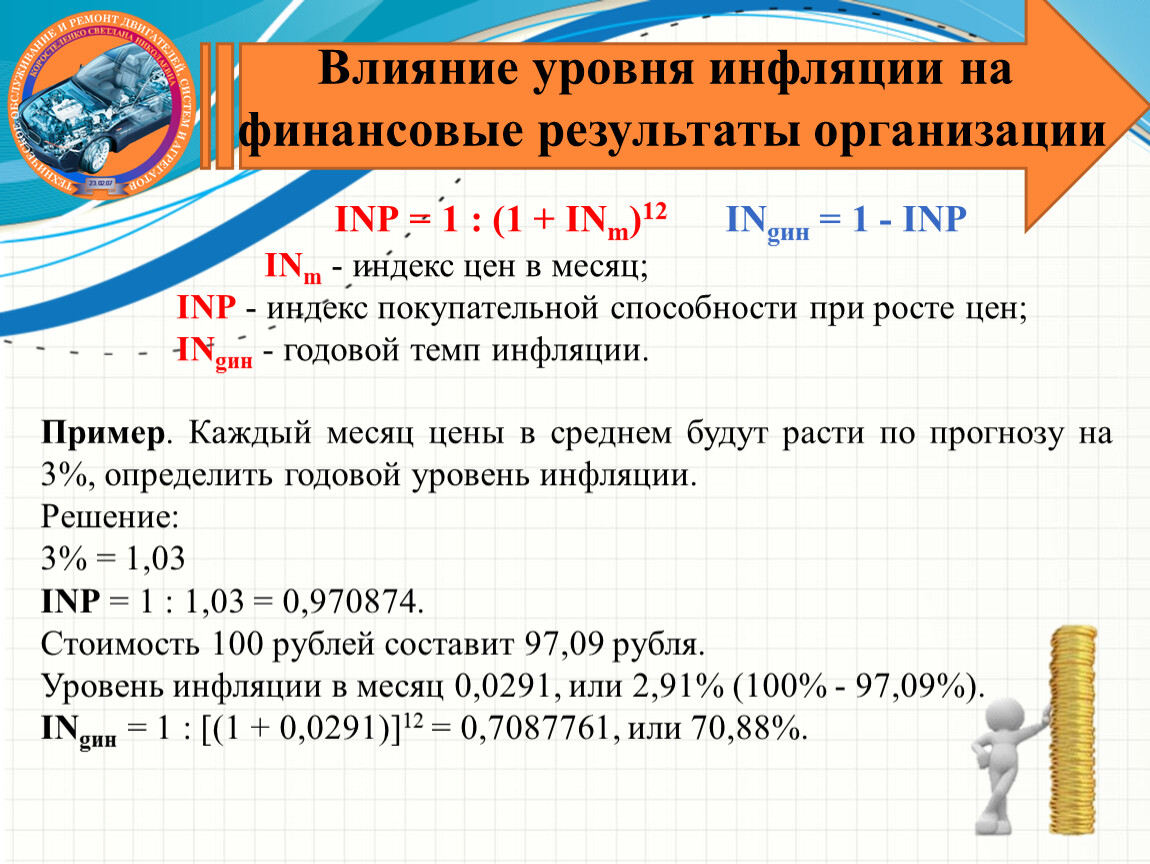 6. Влияние уровня инфляции на финансовые результаты организации.