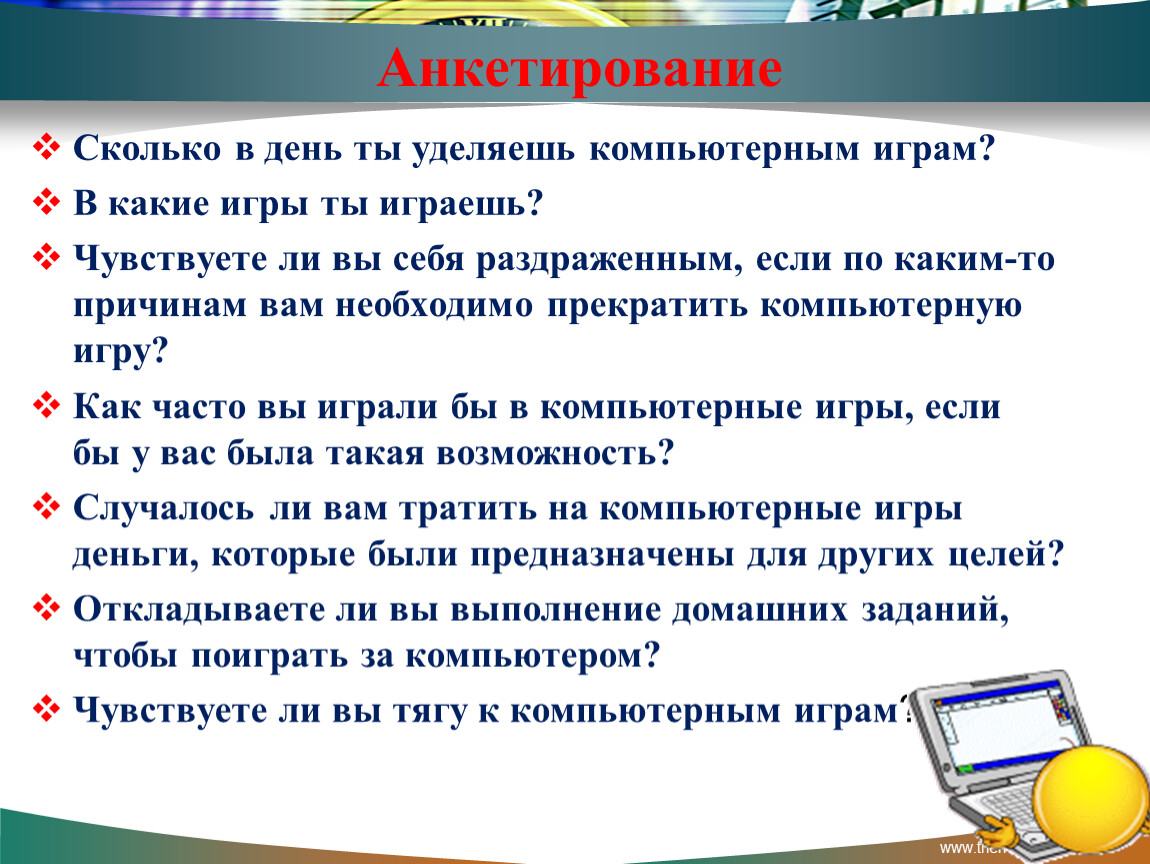 Сколько в день ты уделяешь компьютерным играм?