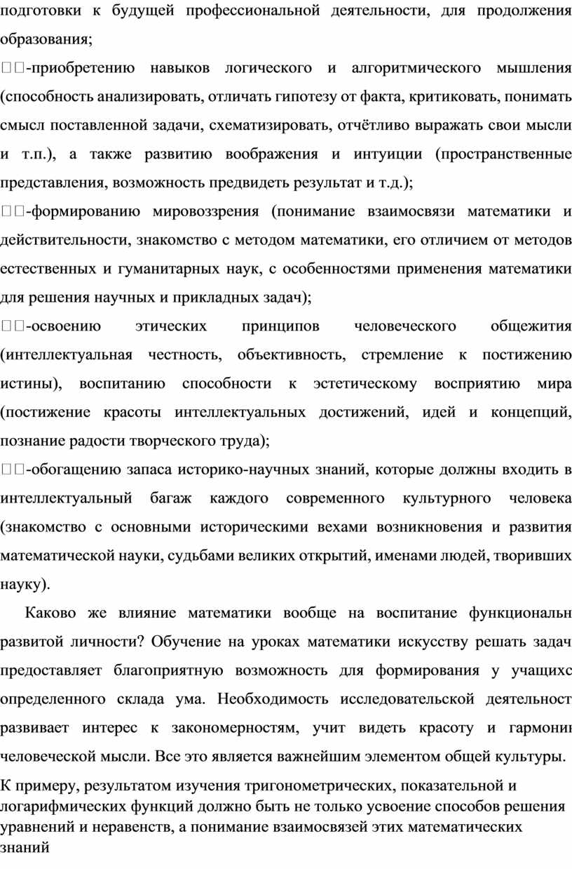 – воспитание личности в процессе освоения математики и математической деятельности;
