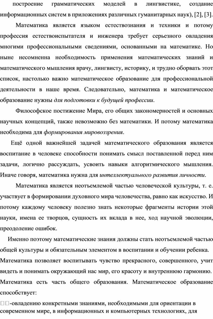 Именно поэтому математические знания должны стать неотъемлемой частью общей культуры и обязательным элементом в воспитании и обучении ребенка.