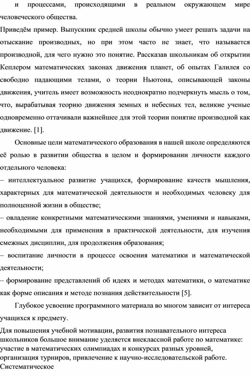 Основные цели математического образования в нашей школе определяются её ролью в развитии общества в целом и формировании личности каждого отдельного человека: