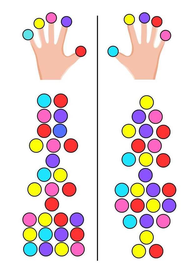 Ход игры: на столе разложены карточки с кругами в ритмическом порядке (например, 2-3-2-3-2-3-2-3)