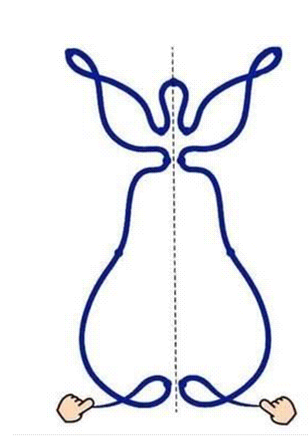 Ход игры: на полу рисуются мелом или наклеиваются, друг напротив друга, дорожки разной конфигурации. Дети разбиваются на пары, встают друг напротив друга и, взявшись за руки, идут каждый по своей дорожке. Цель, пройти свою дорожку не расцепляя рук.