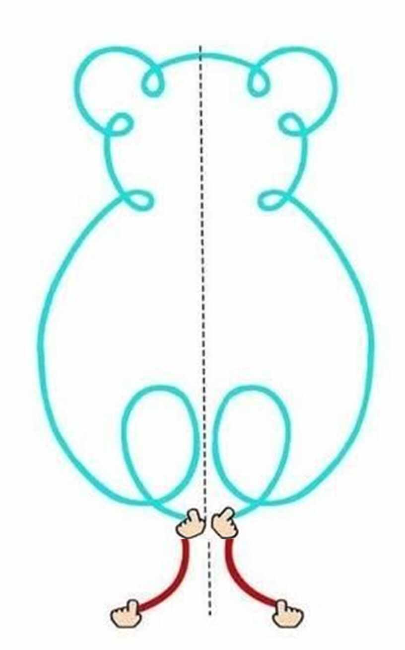 Ход игры: педагог раздает детям многоразовые ламинированные карточки и маркеры. Детям необходимо обвести один и тот же предмет одновременно двумя руками.