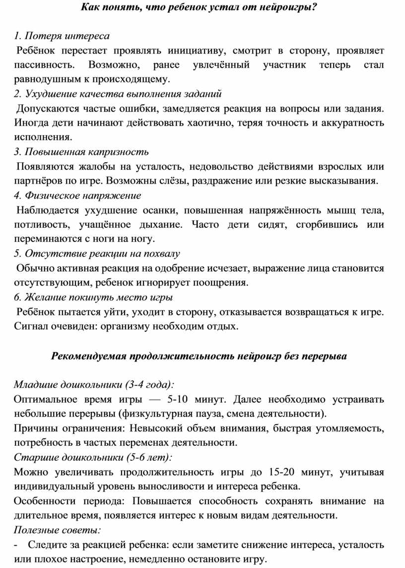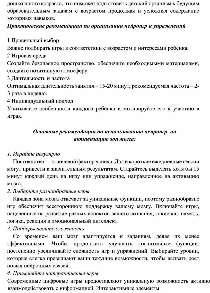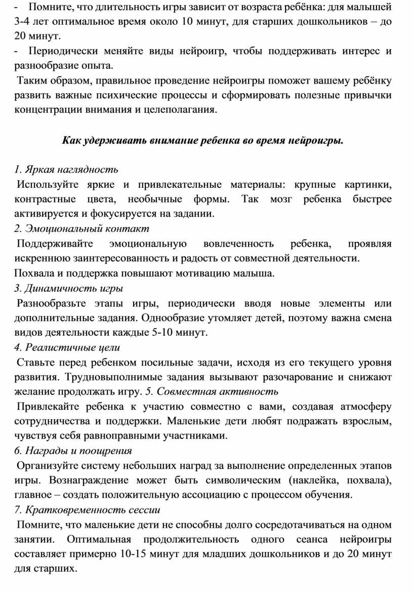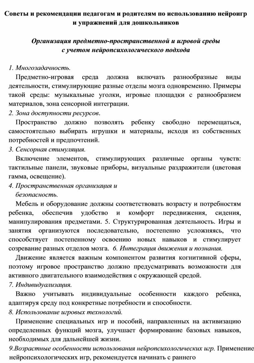 Советы и рекомендации педагогам и родителям по использованию нейроигр и упражнений для дошкольников