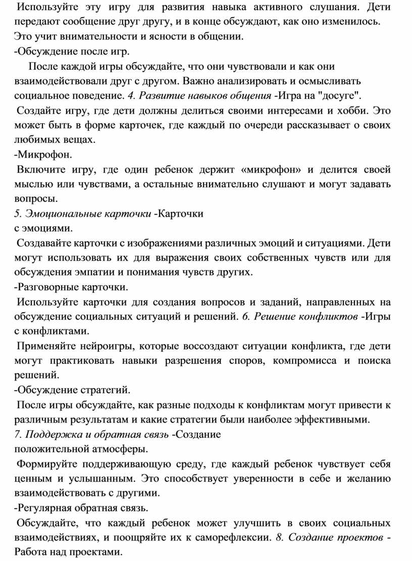 Развитие осуществляется через сюжетно-ролевые игры, общение со взрослыми и сверстниками, чтение книг и знакомство с искусством. 3. Социальное развитие