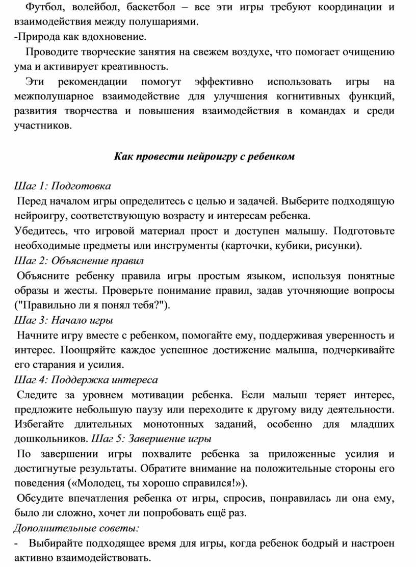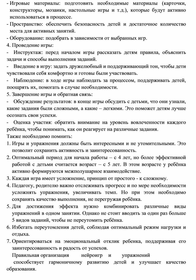 Таким образом, мы надеемся, что данное пособие станет полезным инструментом для педагогов, психологов и родителей, заинтересованных в использовании нейроигр и упражнений как средства повышения качества психофизического развития дошкольников.