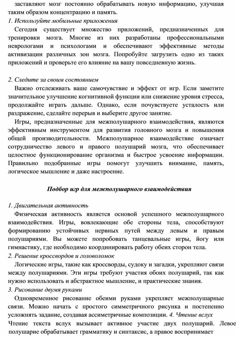 Цель: развитие двух полушарий головного мозга и активизации познавательных процессов.