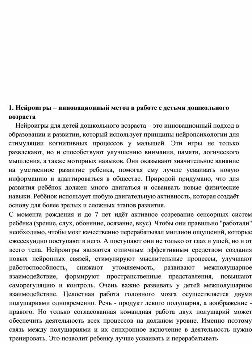 1. Нейроигры – инновационный метод в работе с детьми 5 дошкольного возраста
