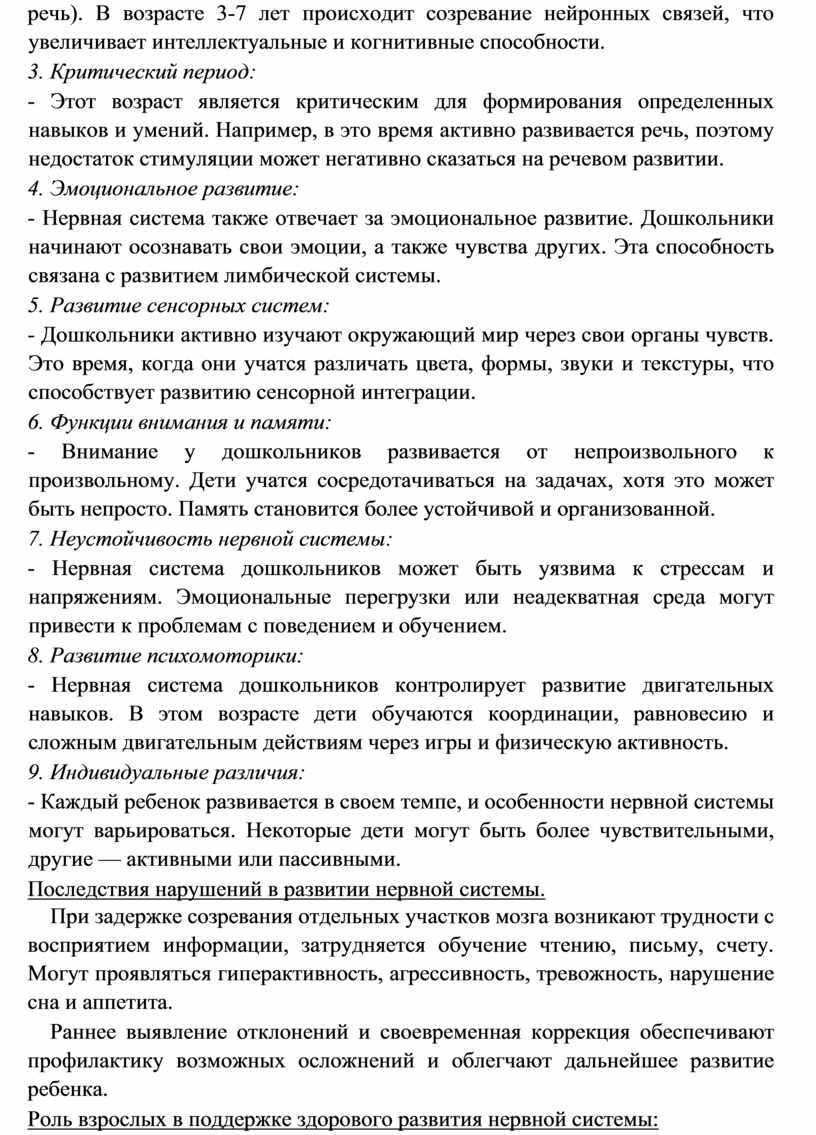 Развитие нервной системы дошкольников имеет свои особенности, учитывая возрастные изменения, которые происходят в этот период. Вот ключевые аспекты: