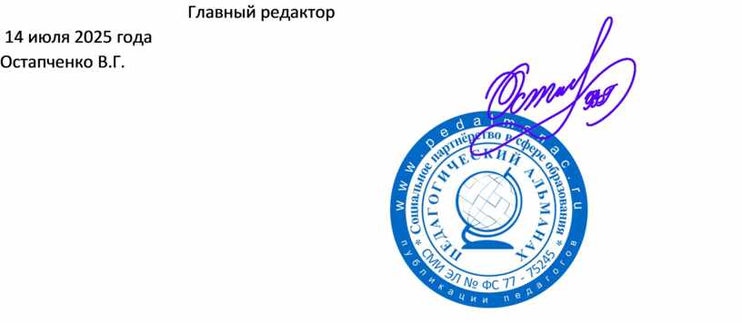 Материал принят к публикации на страницах электронного образовательного СМИ "Педагогический альманах" 14 июля 2025 года.
