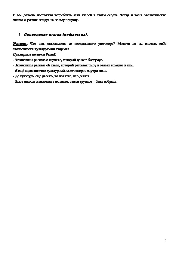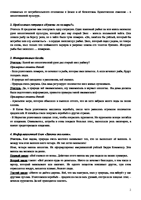 Учитель. Ну что ж, я вижу, вы неплохо усвоили законы экологии. А это уже один из признаков