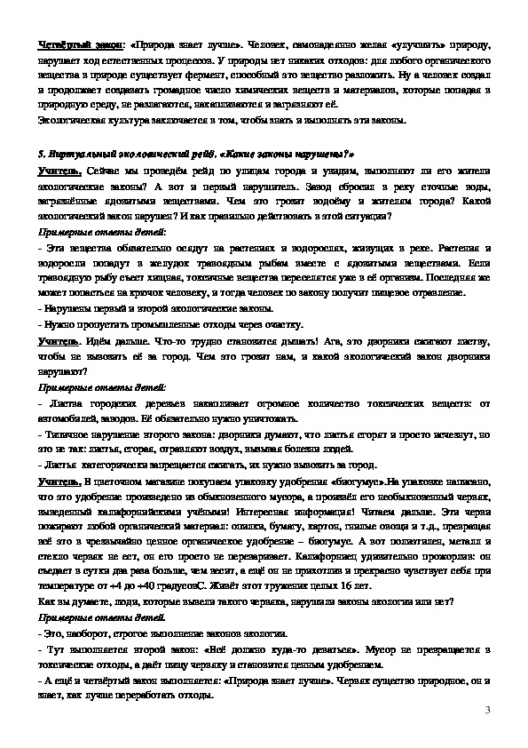 Цели: расширить представление детей об экологических законах; способствовать воспитанию