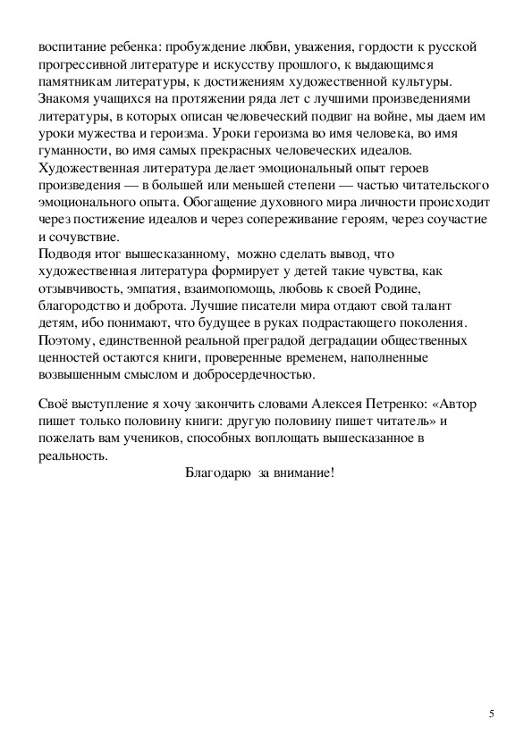 Своё выступление я хочу закончить словами Алексея Петренко: «Автор