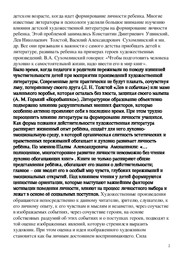 произведений. В.А. Сухомлинский говорил: «Чтобы подготовить человека
